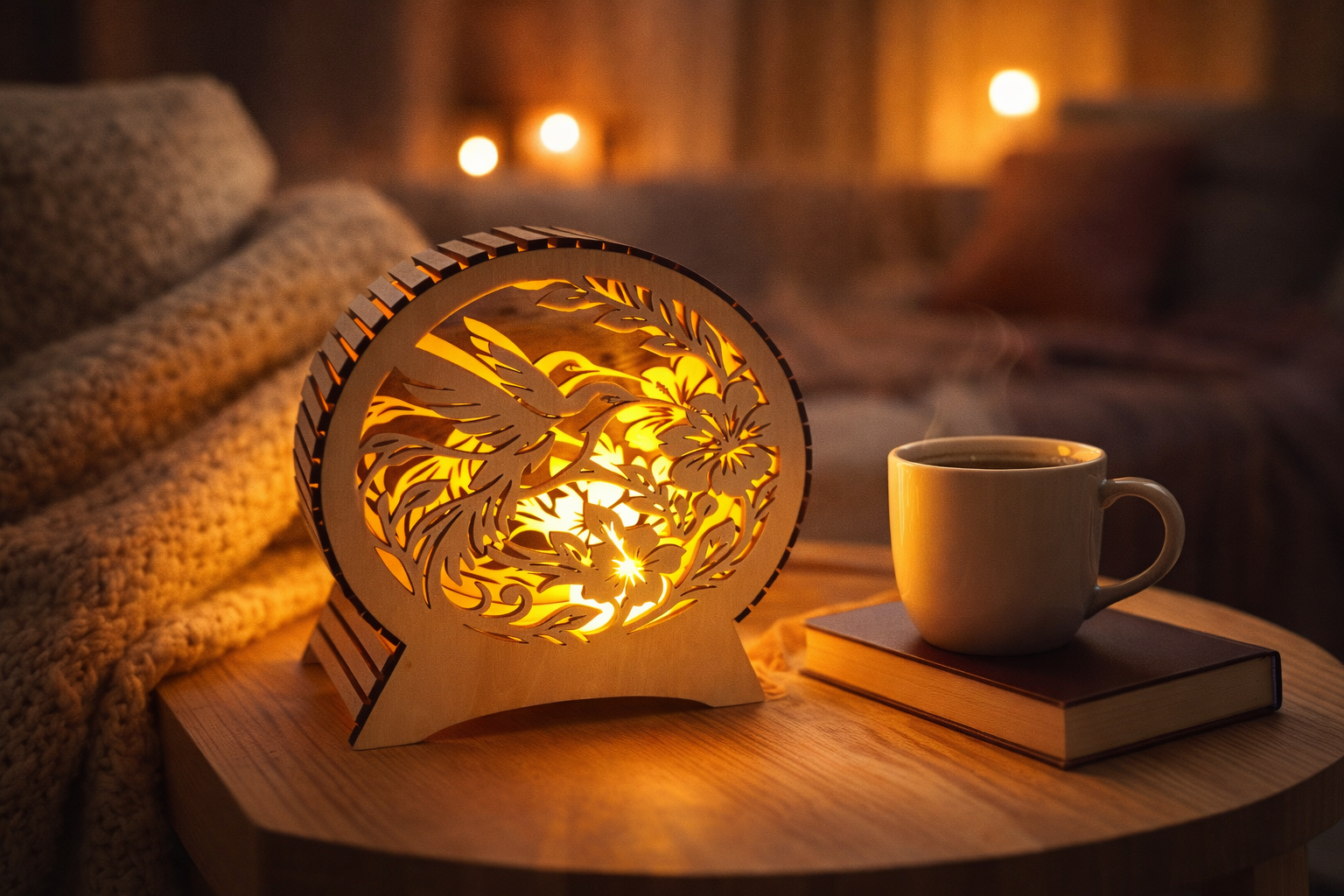 Lampe arbre de vie en bois personnalisé – Décoration artisanale
